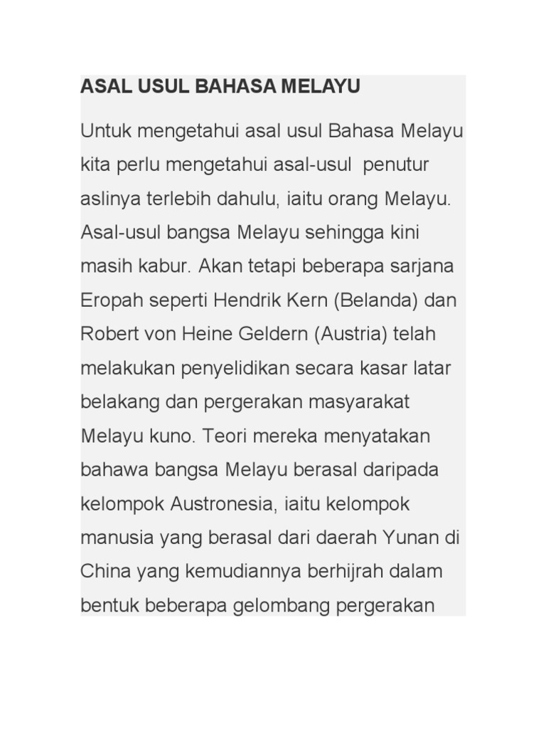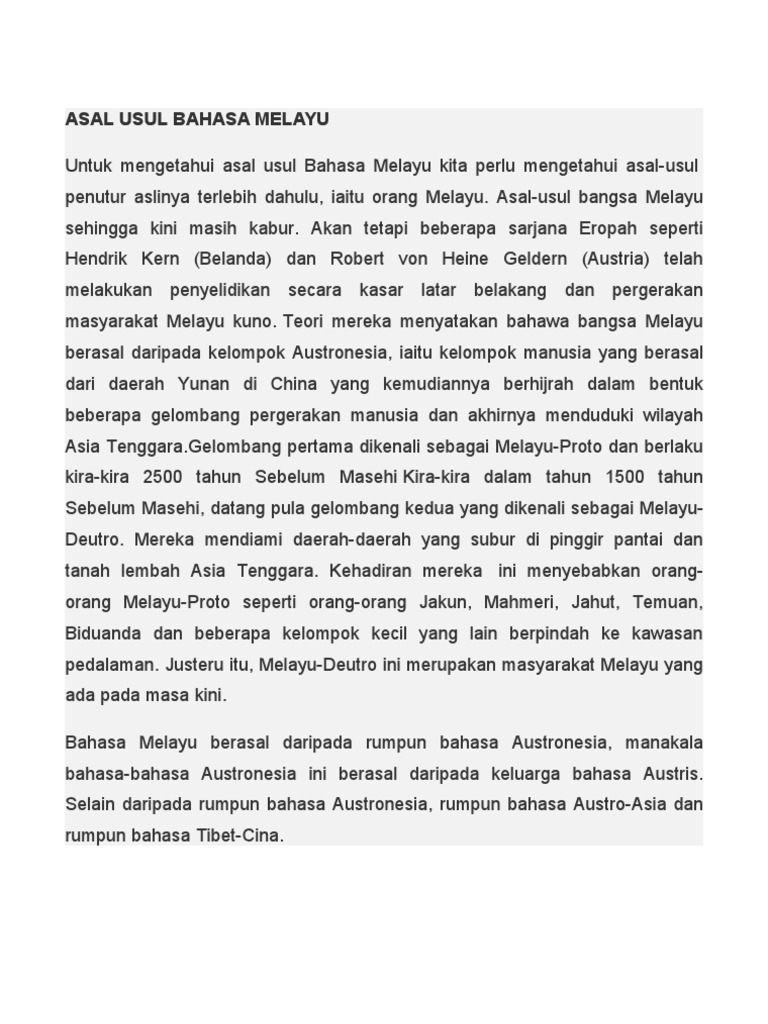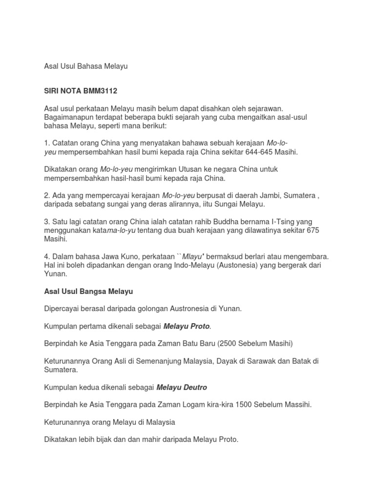 Doc Asal Usul Bahasa Dan Bangsa Melayu Raihanah Syahirah Academia Edu